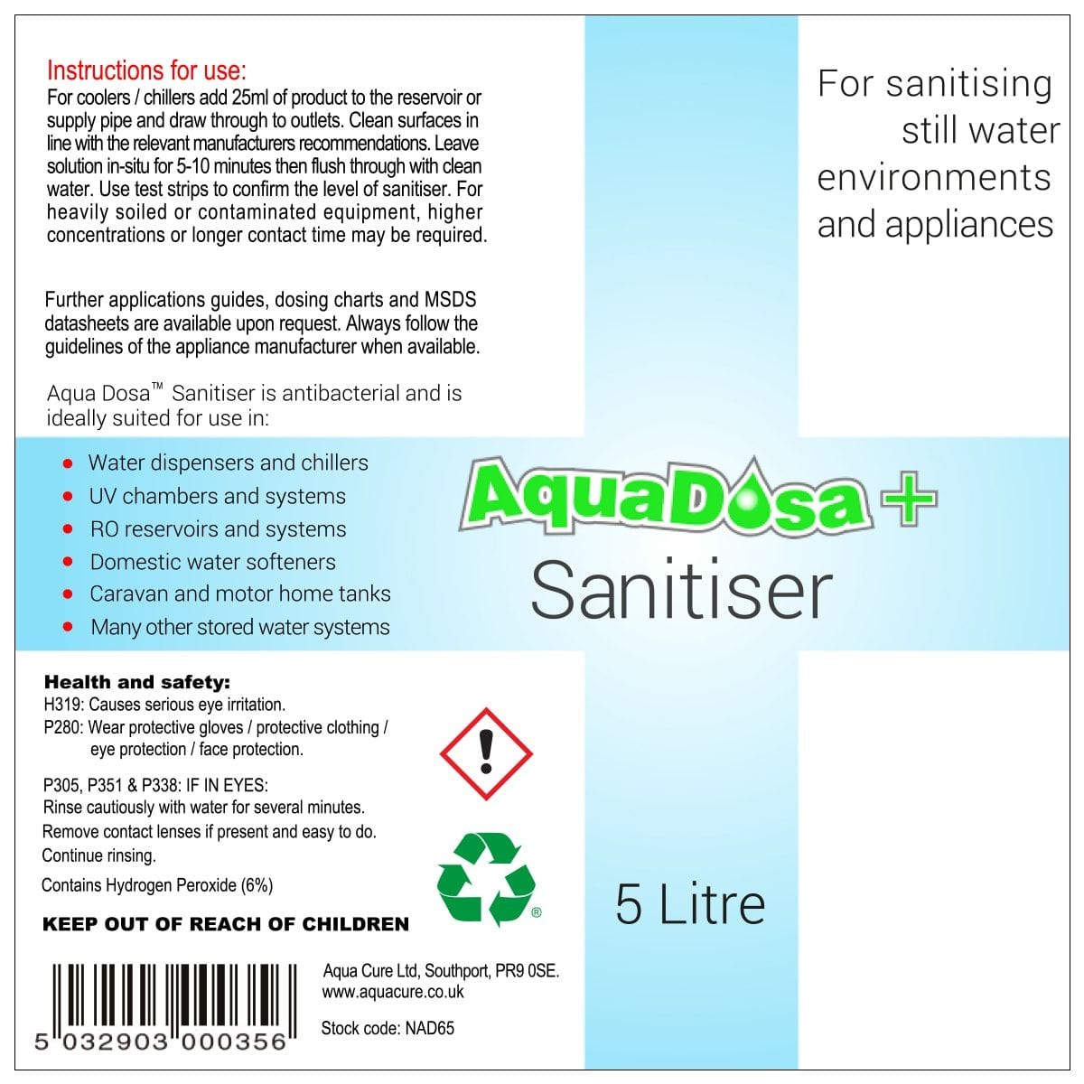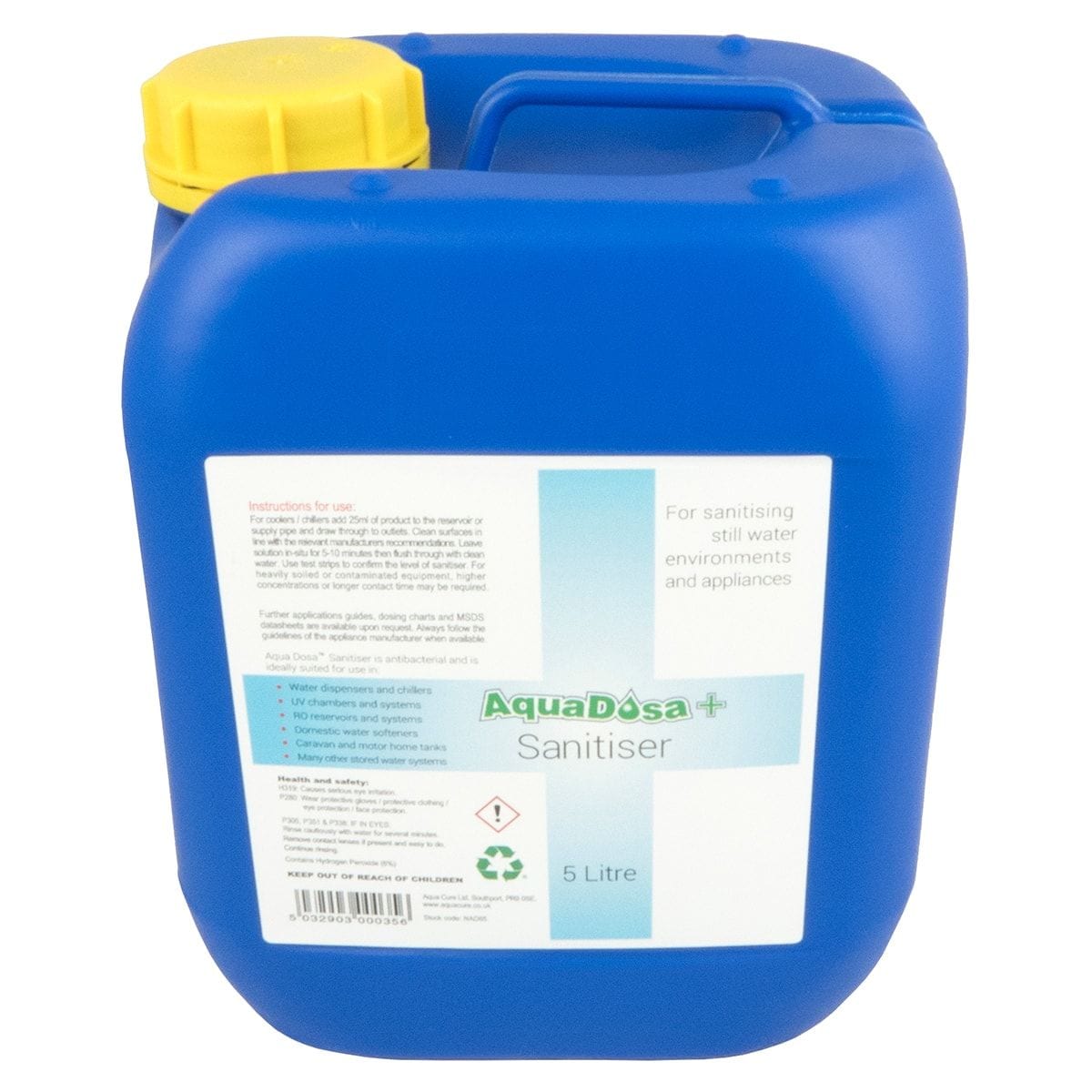 Aquadosa Sanitising Fluid – 6% – 5 Litre Container Requires dilution before use (usually ships in 1-2 working days) Please Note: Image is for illustration only, actual product packaging may differ slightly
