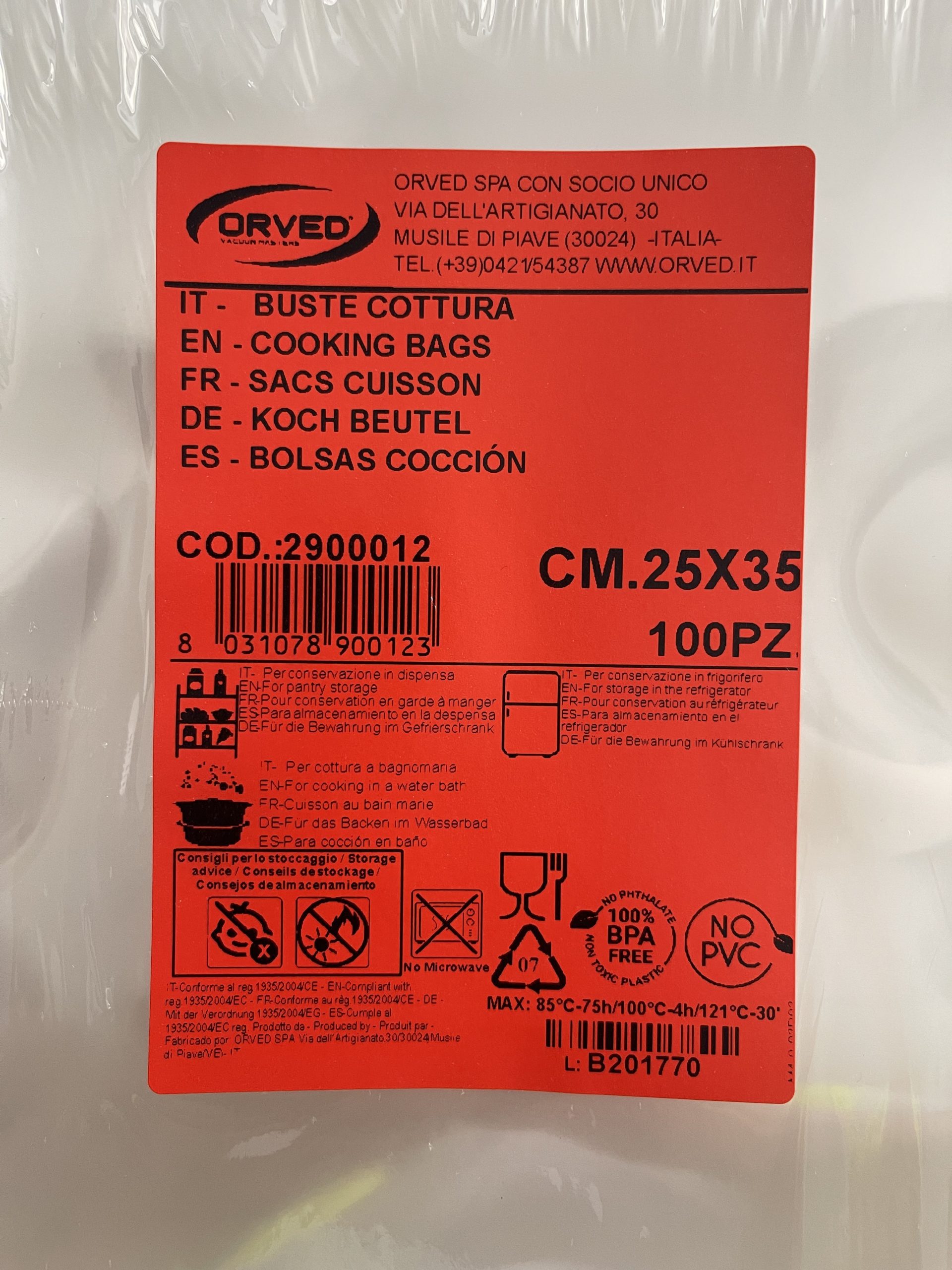 Orved have been manufacturing its own line of smooth Vacuum Bags for 12 years. A great deal of time has gone into research and development of innovative materials which could meet the most sophisticated requirements of Sous-Vide technology.