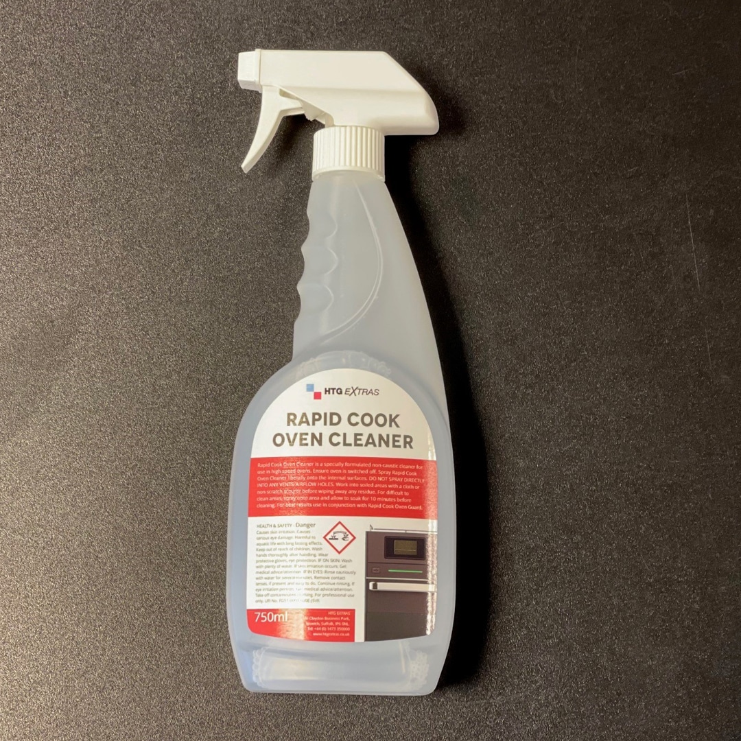 HTG Extras Rapid Cook Oven Cleaner is a non-caustic cleaner designed to protect the sensitive internal components, like catalytic convertors, in all types of rapid cook ovens and conveyors, especially the Pratica FIT Express, Copa Express and Rocket Express ovens supplied by Taylor UK & Hubbard Systems.
