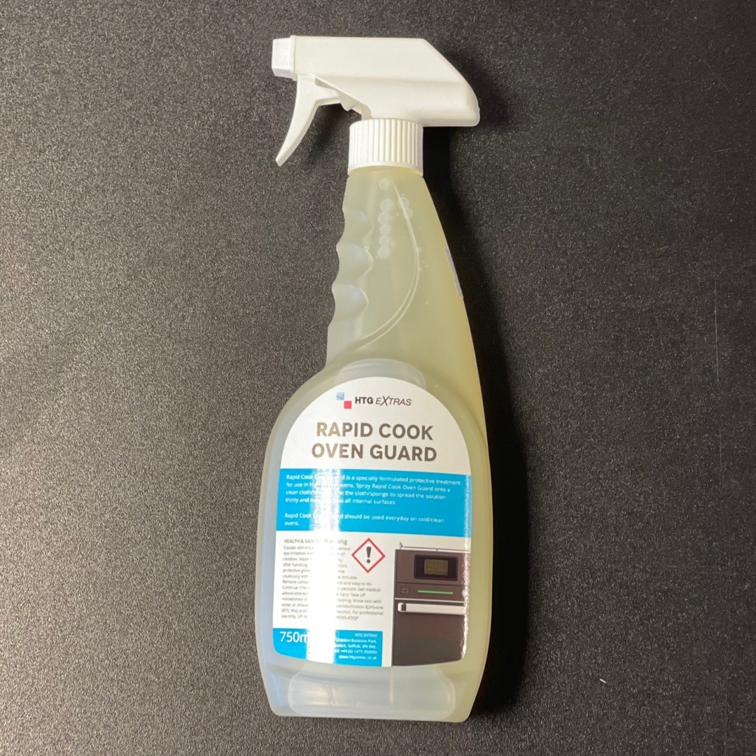 HTG Extras Rapid Cook Oven Guard is a non-caustic protector designed to be applied to rapid cook ovens and conveyors, especially the Pratica FIT Express, Copa Express and Rocket Express ovens, prior to operation to protect the sensitive internal components, like the catalytic convertors and to make cleaning easier at the end of the day when cleaned with HTG Extras Rapid Cook Oven Cleaner.