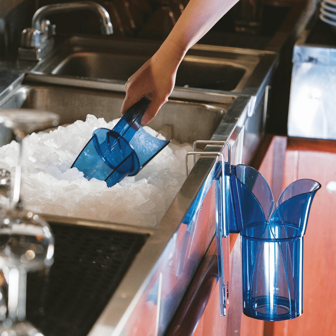 Protect ice from contact with knuckles and thumbs while scooping and serving with the Saf-T-Scoop® & Guardian System. Designed for bar and beverage station applications, Saf-T-Scoop’s domed scoop design allows for faster and more accurate ice scooping, saving time and reducing ice spill hazards. The Guardian holder provides dedicated safe and sanitary storage for Saf-T-Scoop when not in use.